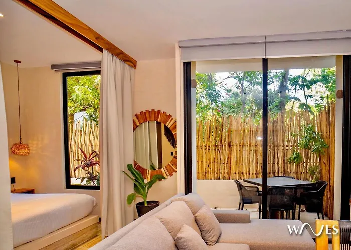 El Natural Lighted Boho Chic Studio With Private Pool By Waves, en el distrito La Veleta ofrece Wi-Fi y servicios de spa como una piscina cubierta. Entre las atracciones de la zona encontrarás la Laguna de Kaan Luum, a unos 25 minutos a pie, y el Cenote Yax Kin Camping se encuentra a unos 2 km del apartamento.